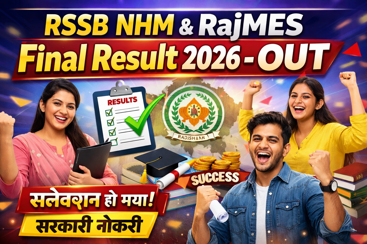 राजस्थान कर्मचारी चयन बोर्ड (RSSB) द्वारा आयोजित राष्ट्रीय स्वास्थ्य मिशन (NHM) एवं राजस्थान मेडिकल एजुकेशन सोसाइटी (RajMES) भर्ती परीक्षा 2026 का Final Result जारी कर दिया गया है। इस रिजल्ट का लाखों अभ्यर्थी लंबे समय से इंतजार कर रहे थे।